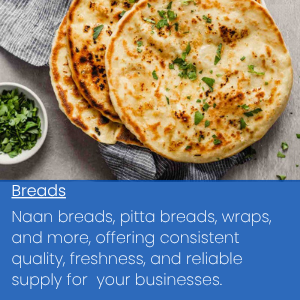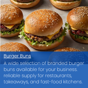 A wide range of bakery products, including buns, breads, wraps, and more, offering consistent quality and reliable supply for restaurants, takeaways, and food service businesses.